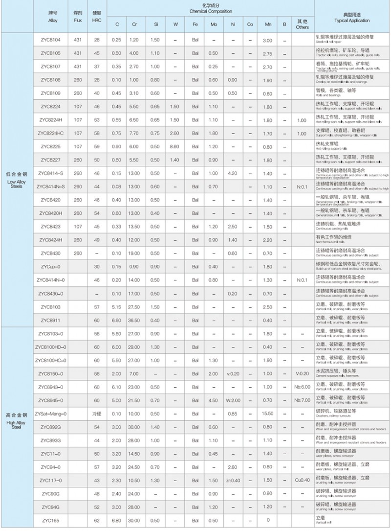 熱噴涂硬面技術中常用的金屬、合金和復合粉末。利用氧一乙炔火焰、等離子火焰或氧一乙炔爆炸火焰等熱噴涂(焊)方法使這些粉末瞬間受熱、在熔化或半熔化狀態下,隨高速熱流而被噴射沉積在冷的或熱的工件表面上,形成表面強化層,以達提高工件表面的耐磨、耐蝕、耐熱、抗氧化或修復外形尺寸等目的。這是一項經濟、實用的工藝技術,已得到廣泛應用。